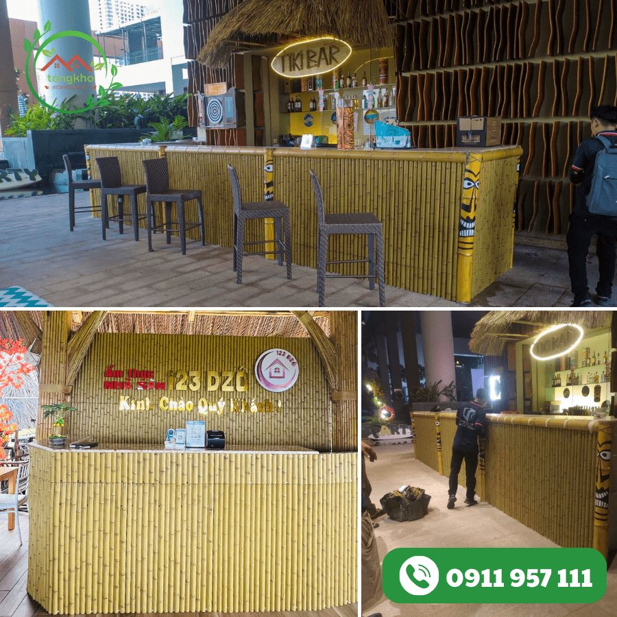 Vật liệu tre nhân tạo tạo cảm giác gần gũi làng quê, thích hợp làm backdrop check-in, booth sự kiện, cổng chào.