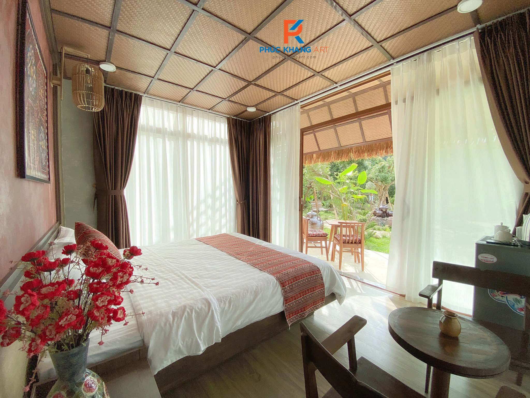 3. Chống nóng tốt: Khi kết hợp với rơm nhân tạo làm trần, cót ép chống nóng rất hiệu quả cho nhà gỗ, nhà sơn mài, resort hoặc homestay.