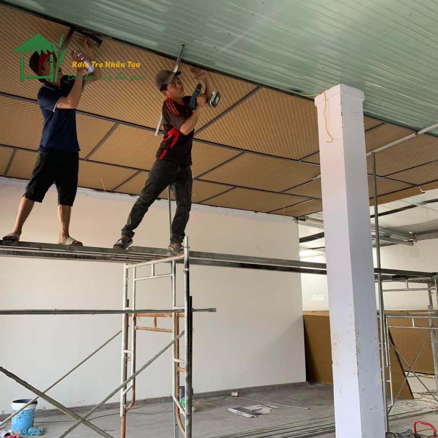 Với kích thước tiêu chuẩn, trọng lượng nhẹ và bề mặt nhẵn, cót ép nhựa giả tre có thể dễ dàng lắp đặt trên trần hoặc tường bằng khung gỗ, khung sắt hoặc nẹp inox. Điều này giúp rút ngắn thời gian thi công đáng kể.