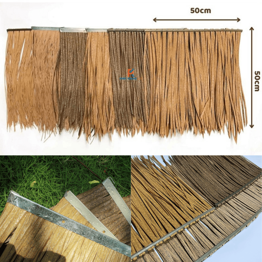 - An toàn: rơm thật dễ bắt lửa, rơm giả có thể chống cháy lan, phù hợp với công trình có bếp hoặc lửa.