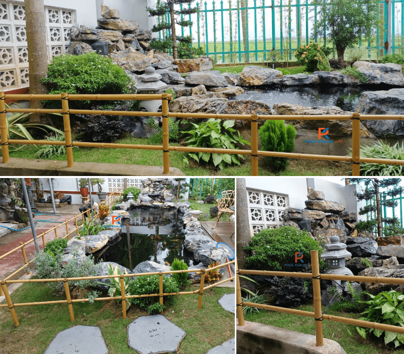 Hàng rào sân vườn decor với ống nhựa giả tre