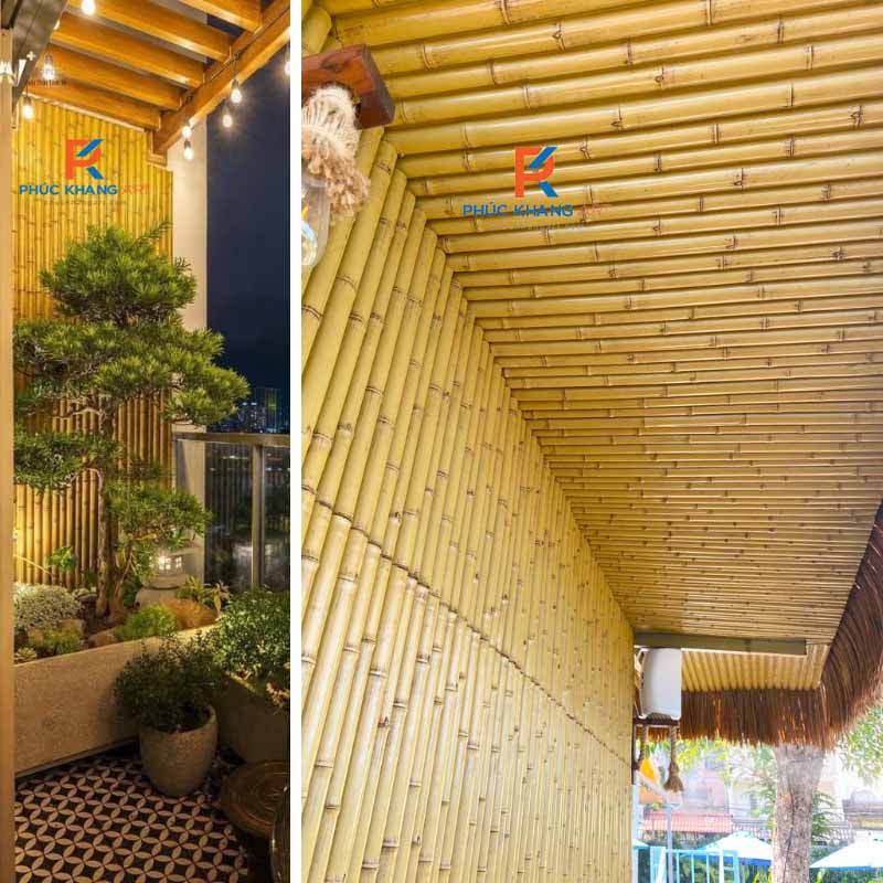 Trần tre nhân tạo thay thế thạch cao hay trần nhựa truyền thống, vừa chống ẩm, vừa tăng tính nghệ thuật. Vân tre nổi bật khiến không gian trở nên độc đáo, lý tưởng cho các công trình theo phong cách Đông Dương, Nhật Bản, Tropical,…