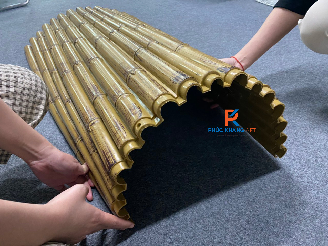 Tấm tre nhân tạo (tên gọi khác: tấm nhựa giả tre, tấm ốp tre nhân tạo, tấm tre nhựa,…). Được sản xuất theo dạng tấm bao gồm các nửa ống tre xếp khít liền mạch với nhau. Được làm giống đến 99% hình dáng của các thanh tre tự nhiên. Sản phẩm đa dạng mẫu mã màu sắc và có trọng lượng khá nhẹ.