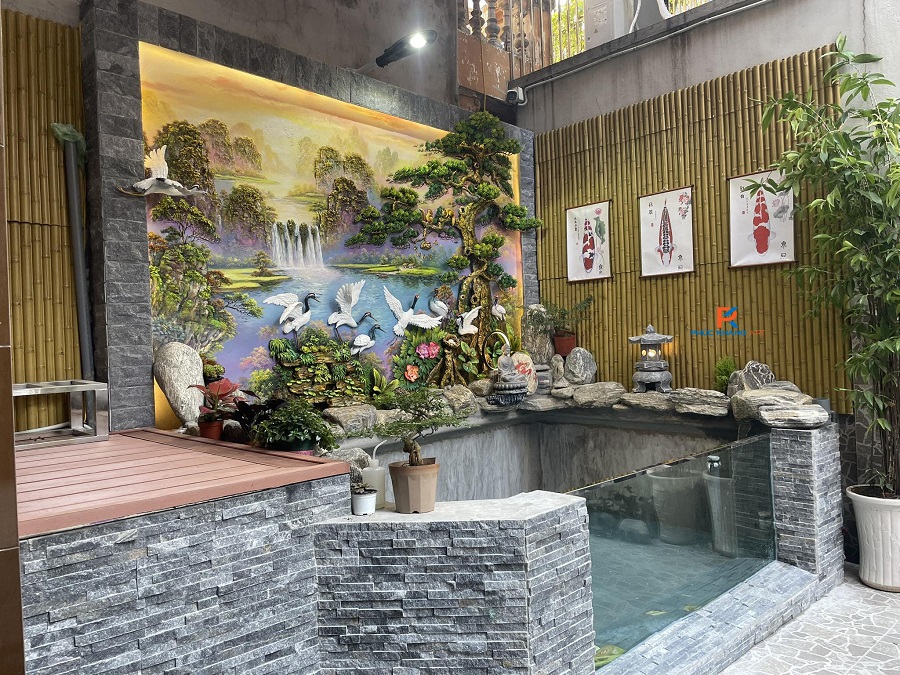 • Thiết kế tiểu cảnh: Kết hợp với cây cảnh, đèn trang trí, tạo không gian nghỉ ngơi, thư giãn.