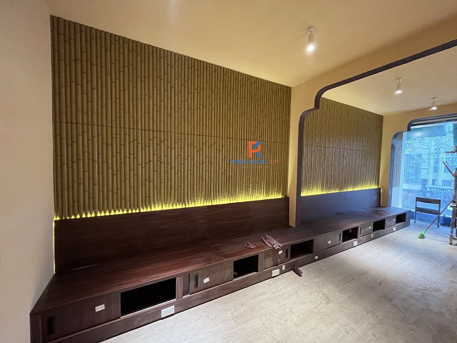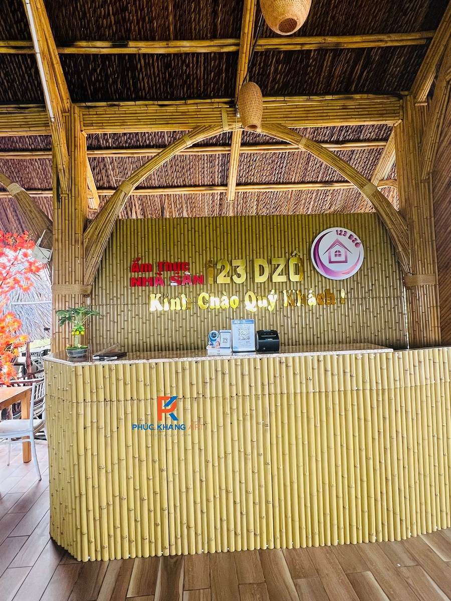 Tấm tre ốp quầy thu ngân tại nhà hàng ẩm thực