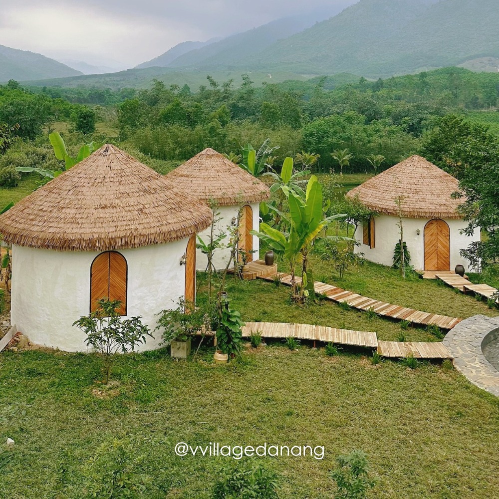 V Village là khu nghỉ dưỡng nằm ven biển Đà Nẵng, được thiết kế theo hướng hoà mình vào tự nhiên. Công trình bao gồm hệ thống bungalow, chòi nghỉ, nhà hàng sân vườn, sử dụng chất liệu tự nhiên kết hợp vật liệu mới để tạo nên tổng thể kiến trúc hài hoà, nhẹ nhàng và bền vững. Trong đó, toàn bộ mái chòi, nhà nghỉ và một phần không gian công cộng đều được thi công bằng rơm nhân tạo làm mái.